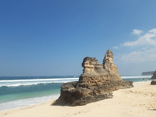 Highlight: Spot foto batu lengkung di pantai, cocok saat sunset.